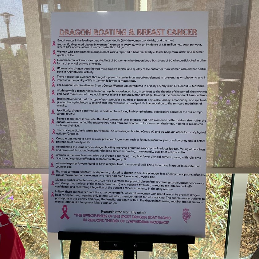 Research strongly suggests that dragon boating specifically helps with improving wellness and post-treatment quality of life. Breast cancer dragon boating is an international movement inspired by the research of Canadian sports medicine specialist Don McKenzie. There are now more than 140 breast cancer survivor dragon boat teams paddling all over the world.